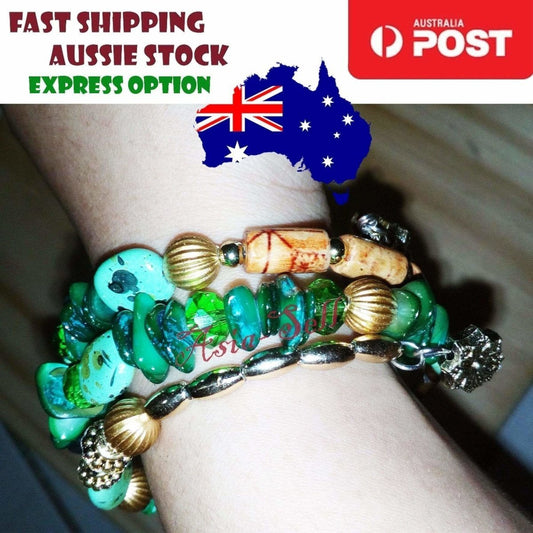 Beads Crystal Charms Bracelets Women Ethnic Imitation Artificial Stone Bangles