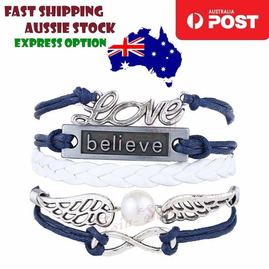 Dragonfly Love Believe Wings Infinity Leather Armband Rope Chain Bracelet Gift