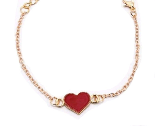 Gold Clip Chain Bangle with Red Heart Armband Charm Arm Band Bracelet Catch