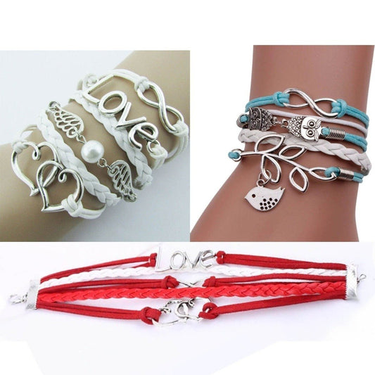 Leather Armband Charms Owl Love Heart Fish Infinity Hearts Charm Bracelet