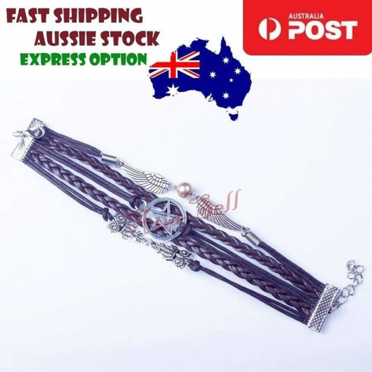 Leather Handmade Bracelet Beaded Eyeball Eye Owl Leaf Multilayer Adjustable