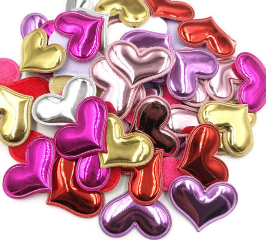 50pcs Glossy Shiny Padded Patches Heart Shape Garment Appliques For Decoration DIY Accessories Toy Craft Clothing PU Leather