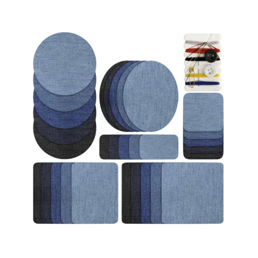 30pcs Iron-on Fabric Blue Black Round Rectangular Denim Jeans Jacket Clothing Patch Set Sewing Repair Shapes