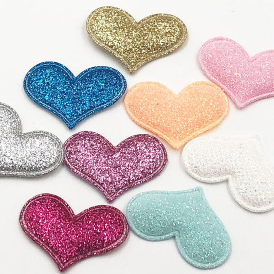 50pcs 35mmx30mm Glitter Padded Heart Felt Patches Appliques For Clothing Sewing DIY Wedding Decoration Toy Craft Shapes PU Leather