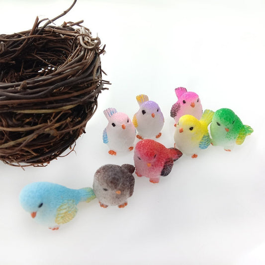 8 Birds + Nest Resin Parrot Bird Nest Figurine Animal Model Home Decorations Miniature Fairy Garden Bonsai Modern Decor Craft