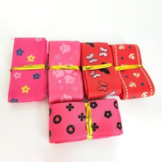 5m Mixed Grosgrain Hair Ribbons 25mm Decorative Patterns Colourful Bright