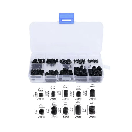 200pcs 3mm-10mm Box Headless Screw Hexagon Socket Screw Combination Platter Set (Recessed End) Tool