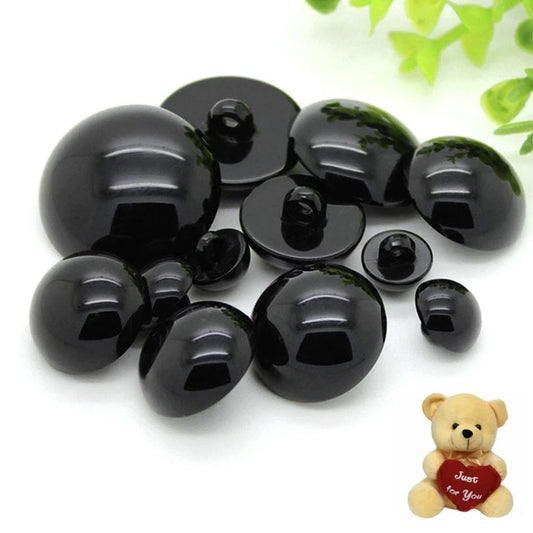 100x 9mm-25mm Buttons Round Mushroom Domed Sewing Loop Shank Black DIY Animal Eyes Toy Teddy