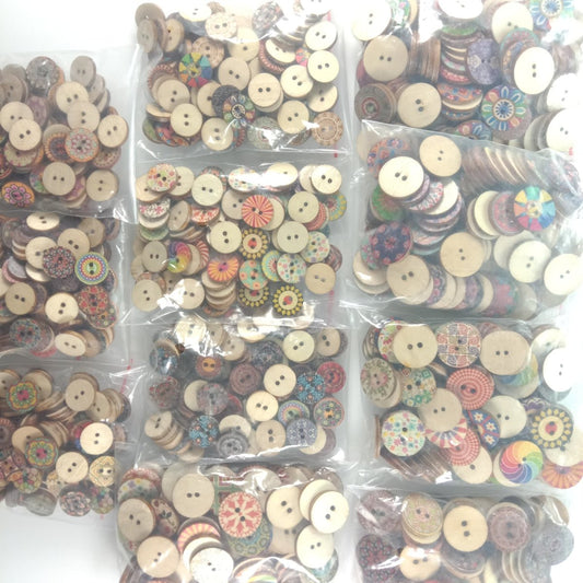100pcs Retro Wooden Buttons for Handmade Clothes 15-20mm Random Selection Scrapbooking