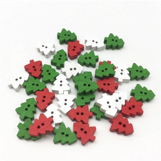25pcs Christmas Tree Buttons Red Green White Wood 2 Holes Scrapbooking Crafts