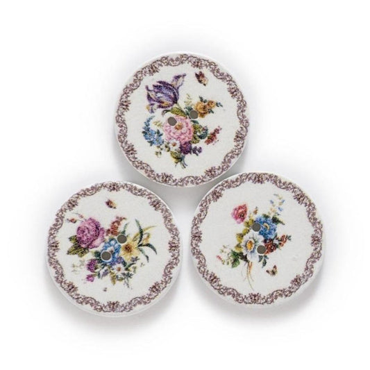 50pcs Flower Retro Series White Wood Buttons Sewing Scrapbook Clothing 15-25mm