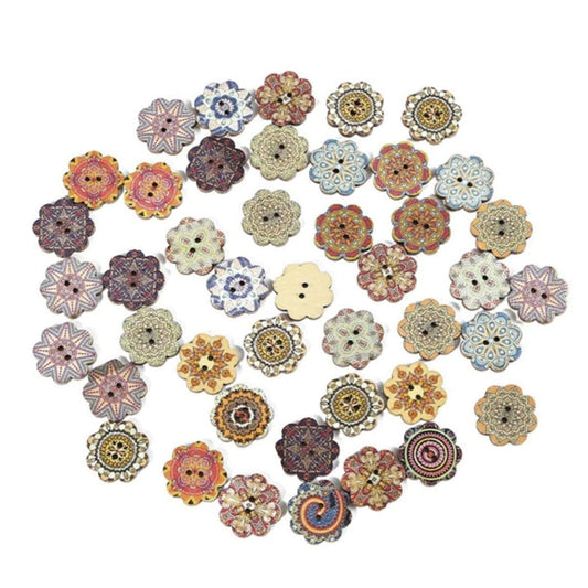 50x Retro Wooden Buttons for Scrapbooking and Handmade Clothes 15-25mm Set C