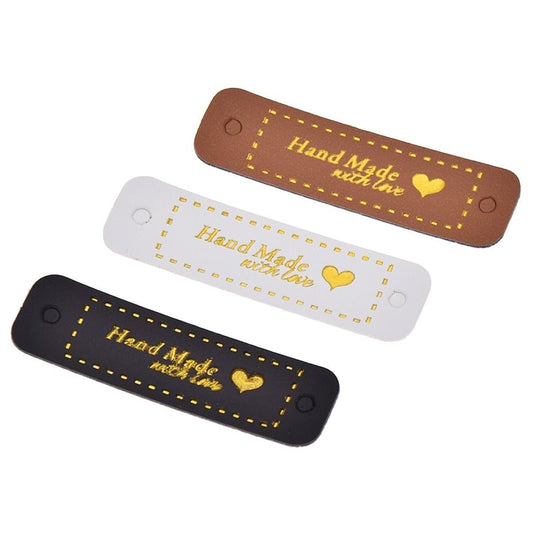 8pcs PU Leather Garment Labels Tags Gold Writing Handmade with Love Clothes Bags Jeans Shoes DIY Clothing