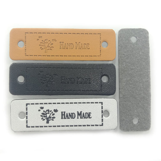 12x Sewing Tags Clothing Labels Faux Leather "Handmade" Clothes Bags DIY Hand Made