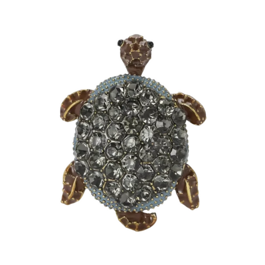 Crystal Adorned Sea Turtle Brooch Classic Rhinestone Pin Backing for Clothing