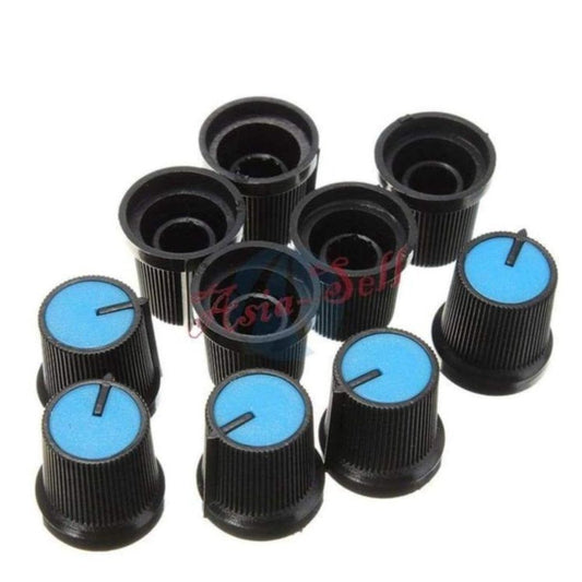10pcs Black Knob Blue Face Plastic for Rotary Taper Potentiometer Hole 6mm
