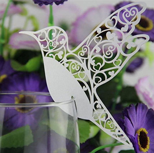 10/50pcs Bird Wine Glass Place Holder Name Cards 100x50mm Laser Cut Cardboard Wedding Table