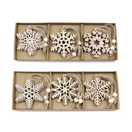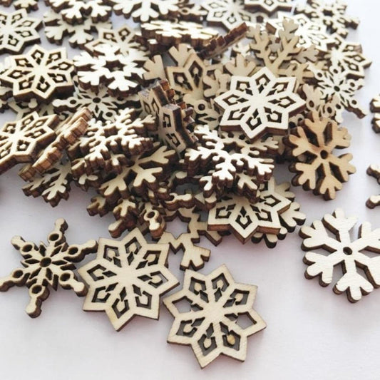 50pcs 18mm White Wooden Snowflakes Christmas Snow Craft Pendant Xmas Decor Home Decorations