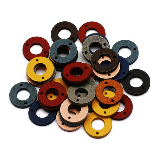 30pcs 18-25mm Coloured Hollow Heart Star Square Circle Ring Teardrop Leaf Natural Wooden Beads Loose Beads For Jewellery Making DIY Handmade Necklace Bracelet Supplies
