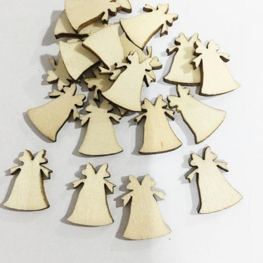 50pcs Angels 19mm Natural Wood Craft Christmas Pendant New Year Decor Home Decorations