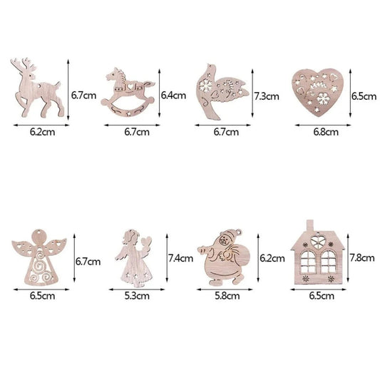 50pcs Natural Wood Craft Christmas Pendant Hanging Ornament Reindeer Xmas Tree Snowflakes Decor Home Set A