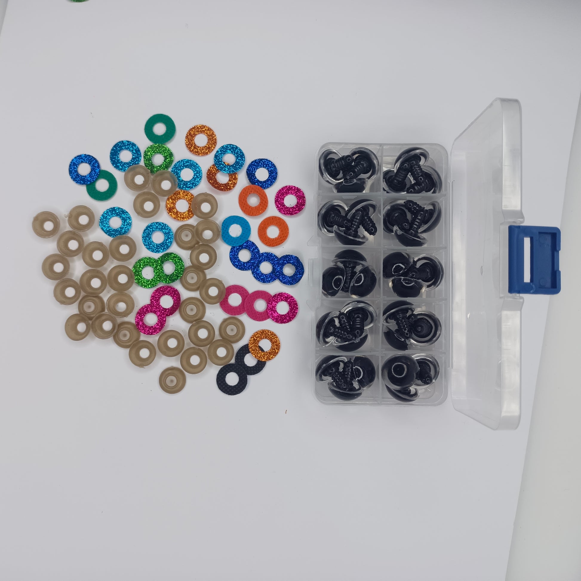 - 30pcs 18mm Glitter Coloured Safety Screw Eyes with Backings For Puppet Teddy Bear Doll Animal Plastic Eyes.